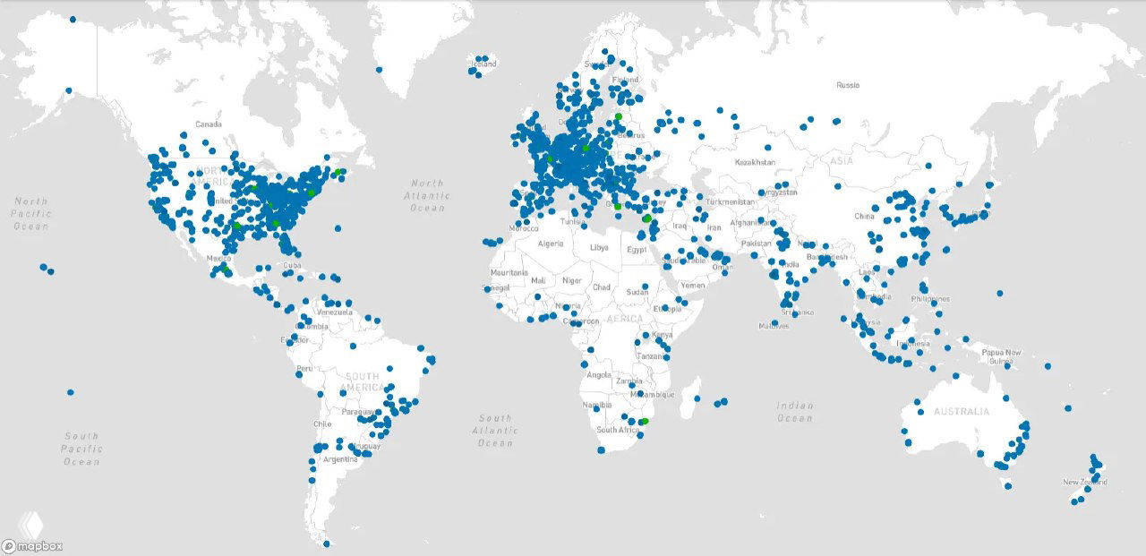 Всего на карте указано 8262 дата-центра, 3027 из которых находятся в США