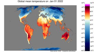 Карта среднесуточных температур мира за 2022 год; источник данных — ERA5. Визуализация с Reddit и ссылки на другие публикации про климат.