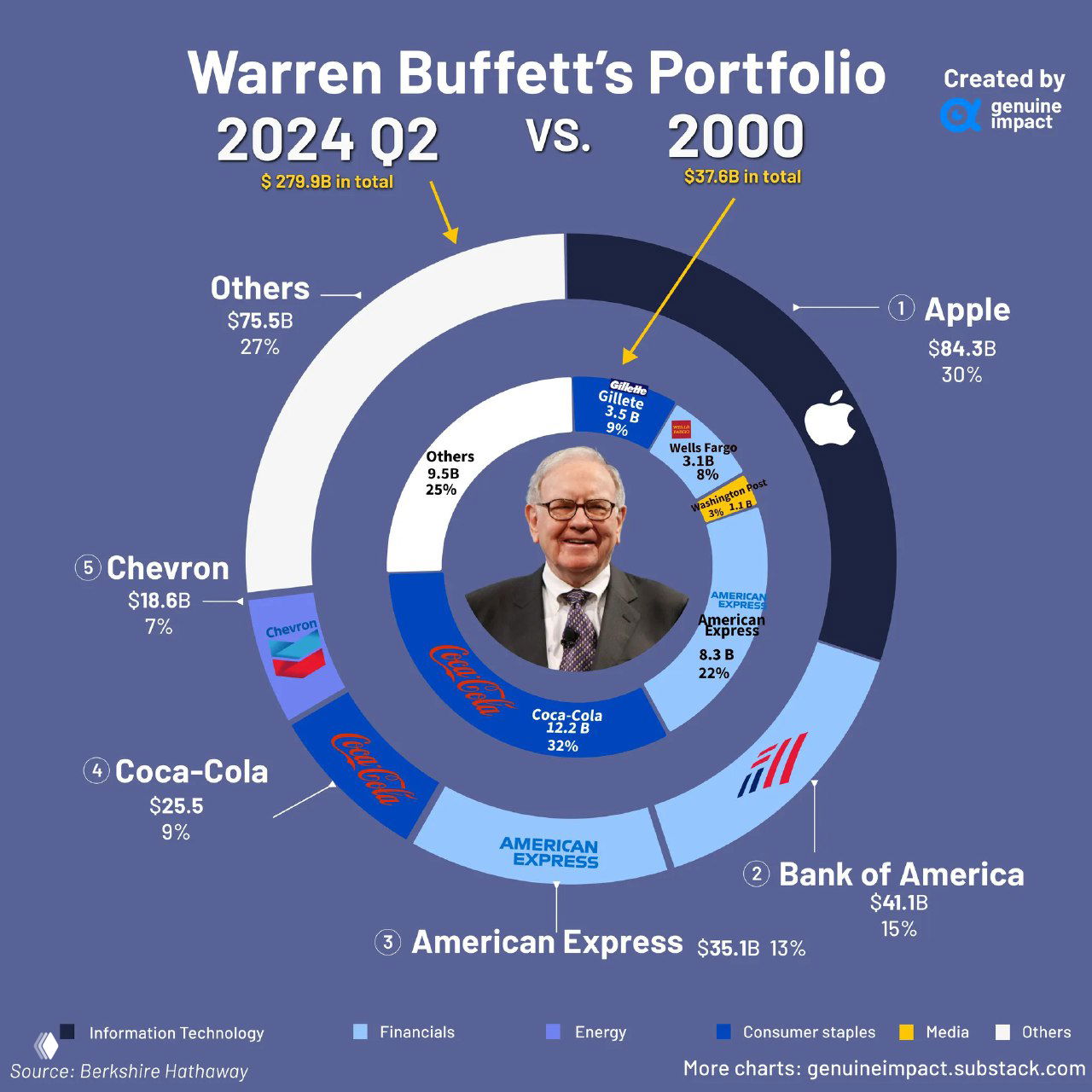 Ежеквартальный прирост 2012–2024: портфель, связанный с родственниками Нэнси Пелоси, +950%; портфель Баффета +445%; S&P 500 +439%.