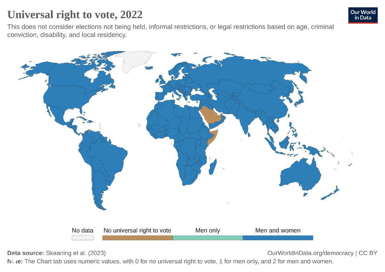 Карта всеобщего избирательного права в 2022 году (Our World in Data).