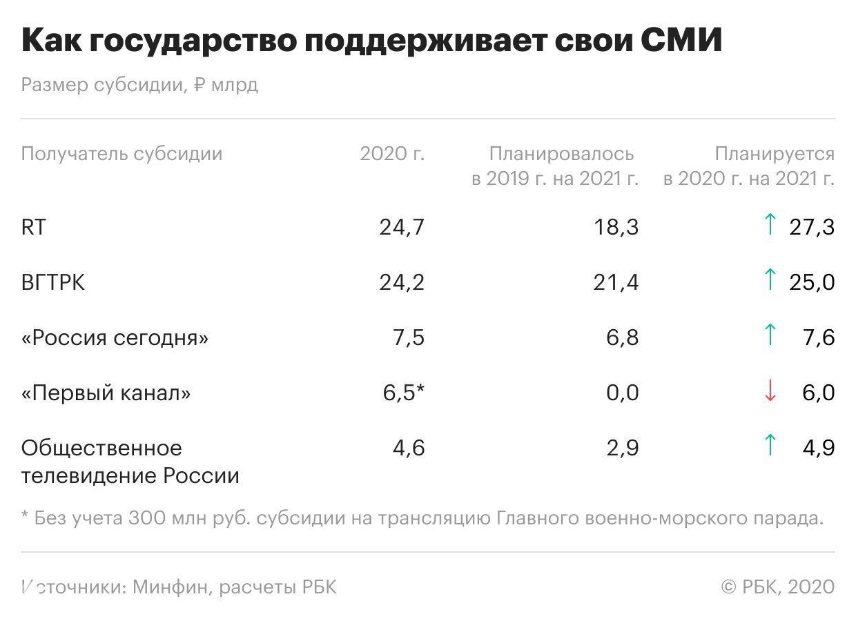 Субсидии государственным телеканалам и СМИ, 2020–2021