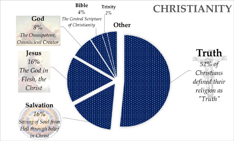 - христиане: истина (52%), спасение (16%), Иисус (16%), Бог (8%)