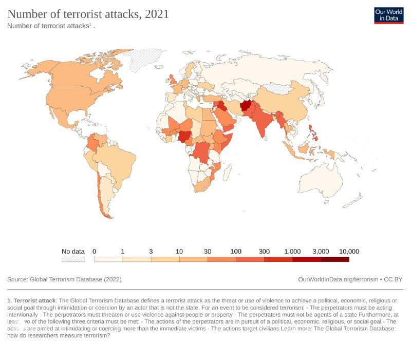- Число террористических актов в странах мира, 2021