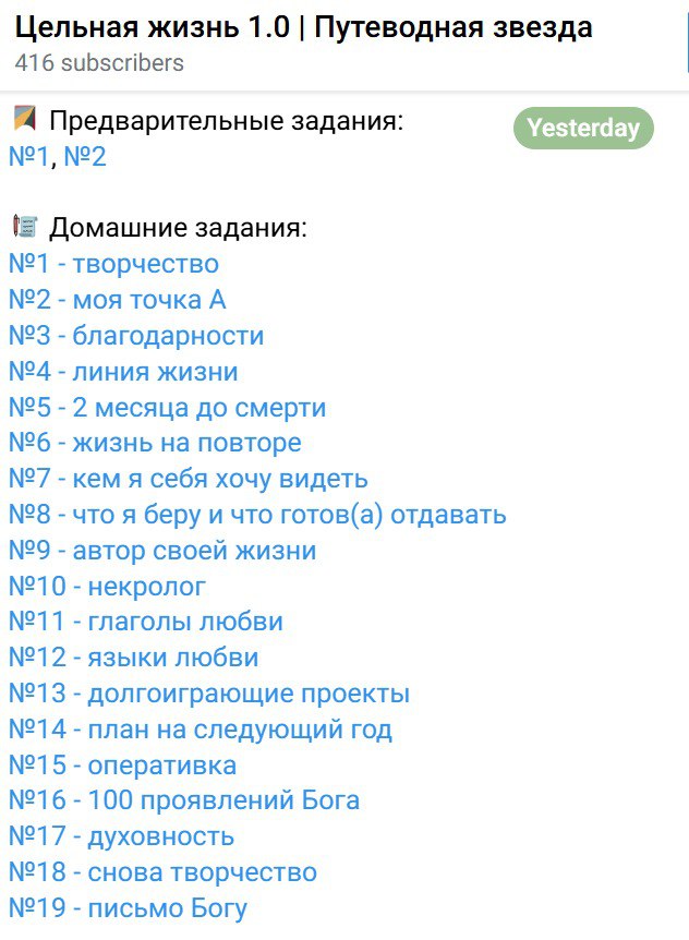- вышло 19 домашних заданий, в том числе «Некролог», «Языки любви», «Жизнь на повторе» (полный список на скринах);