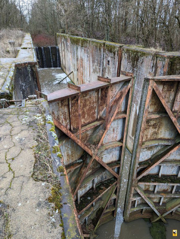 Раз уж я взял в аренду кроссовер, то, несмотря на распутицу и грязь в конце зимы, решил посмотреть на шлюзы Мазурского канала. Длиннющего водного пути в 50 км, который остался так и недостроен, хотя проекты его обсуждались еще в незапамятные времена. Воды в калининградской части все меньше, но у шлюзов еще встречается. Что, конечно, создает более атмосферный эффект. Конкретно на фото – шлюз №2: #геопозиция – 54.48786, 21.21146. О восстановлении Мазурского канала речи, конечно, не идет, да и смысла нет. Но совсем брошенным его тоже не назовёшь. Работает домик смотрителя шлюза как музей. И хотя вокруг самого канала та еще #забродина, таблички с исторической справкой висят даже здесь.