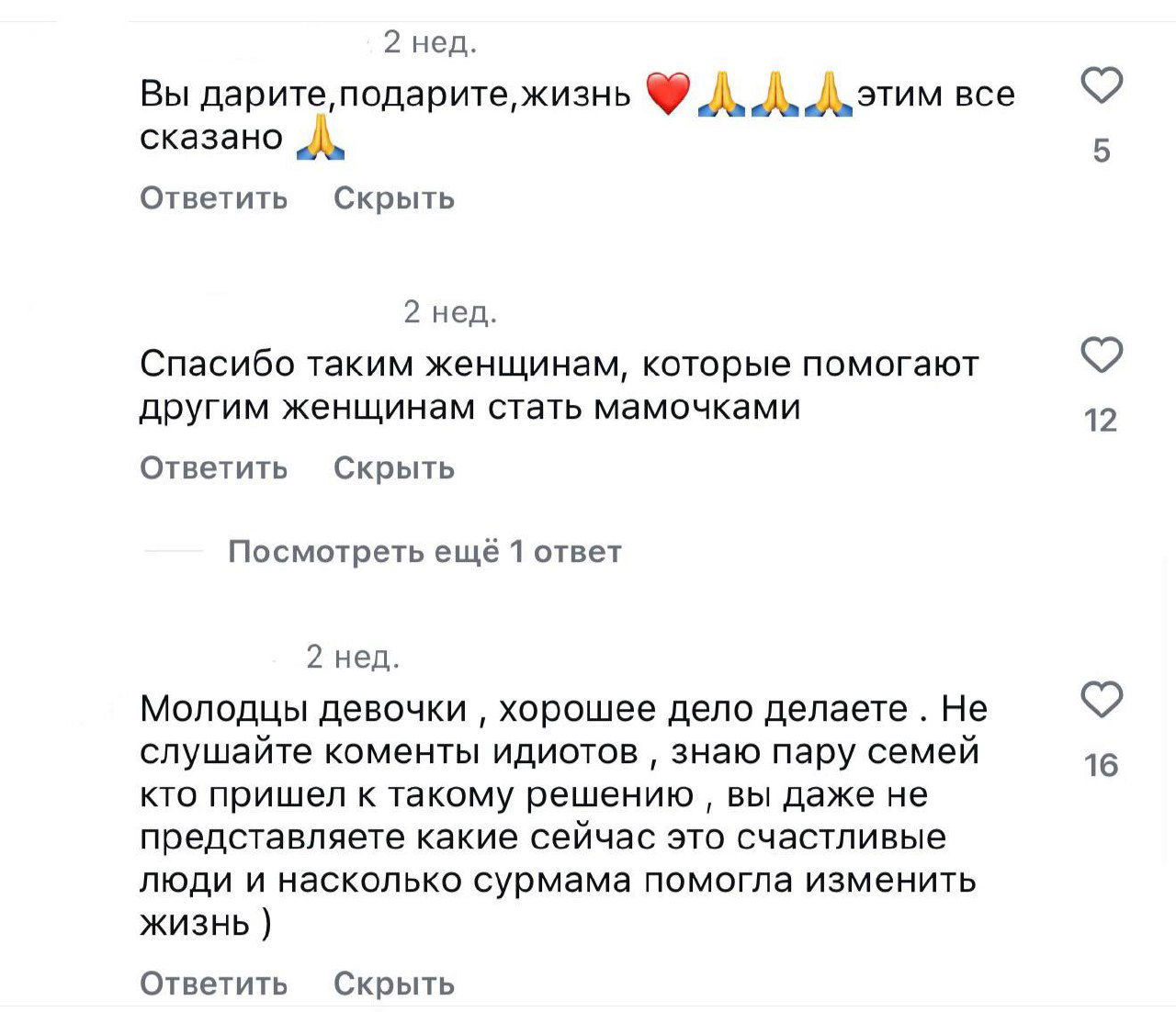 Мы прикрепили скрины с благодарностями суррогатным мамам 👆благодарности и понимание от тех, кто понимает ценность их дела.