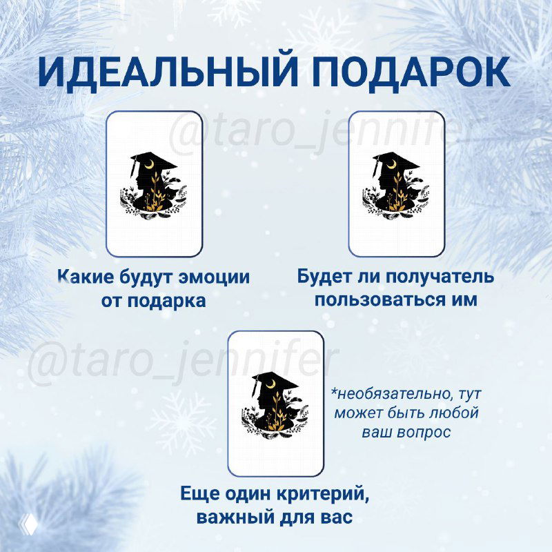 Схема Таро‑расклада для выбора идеального подарка: три позиции (эмоции, польза, ваш критерий) помогают оценить идеи.
