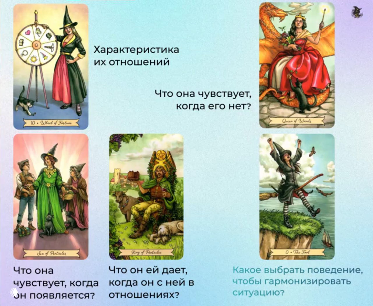 В интенсиве «Таро в отношениях» я разобрала этот расклад подробнейшим образом, и самое главное! Я рассказала, по какому принципу составляла эту схему - прям последовательно, зачем и почему там нужна каждая позиция.