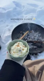 Находим сугроб, делаем выемку, насыпаем соль, ставим миску. Смешиваем все ингредиенты. Ждём 15 минут, перемешиваем еще раз и все готово.