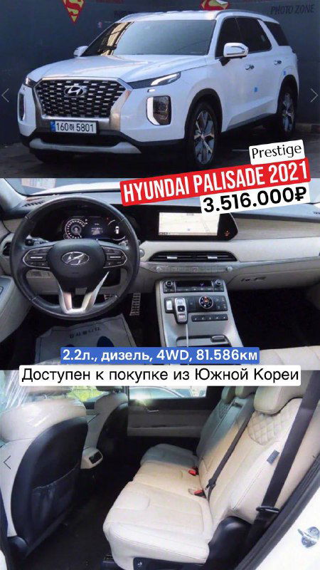 💵4.000.000₽ - 8️⃣Hyundai Palisade — 2022г., 2.2л., дизель, 2WD, 32.532км