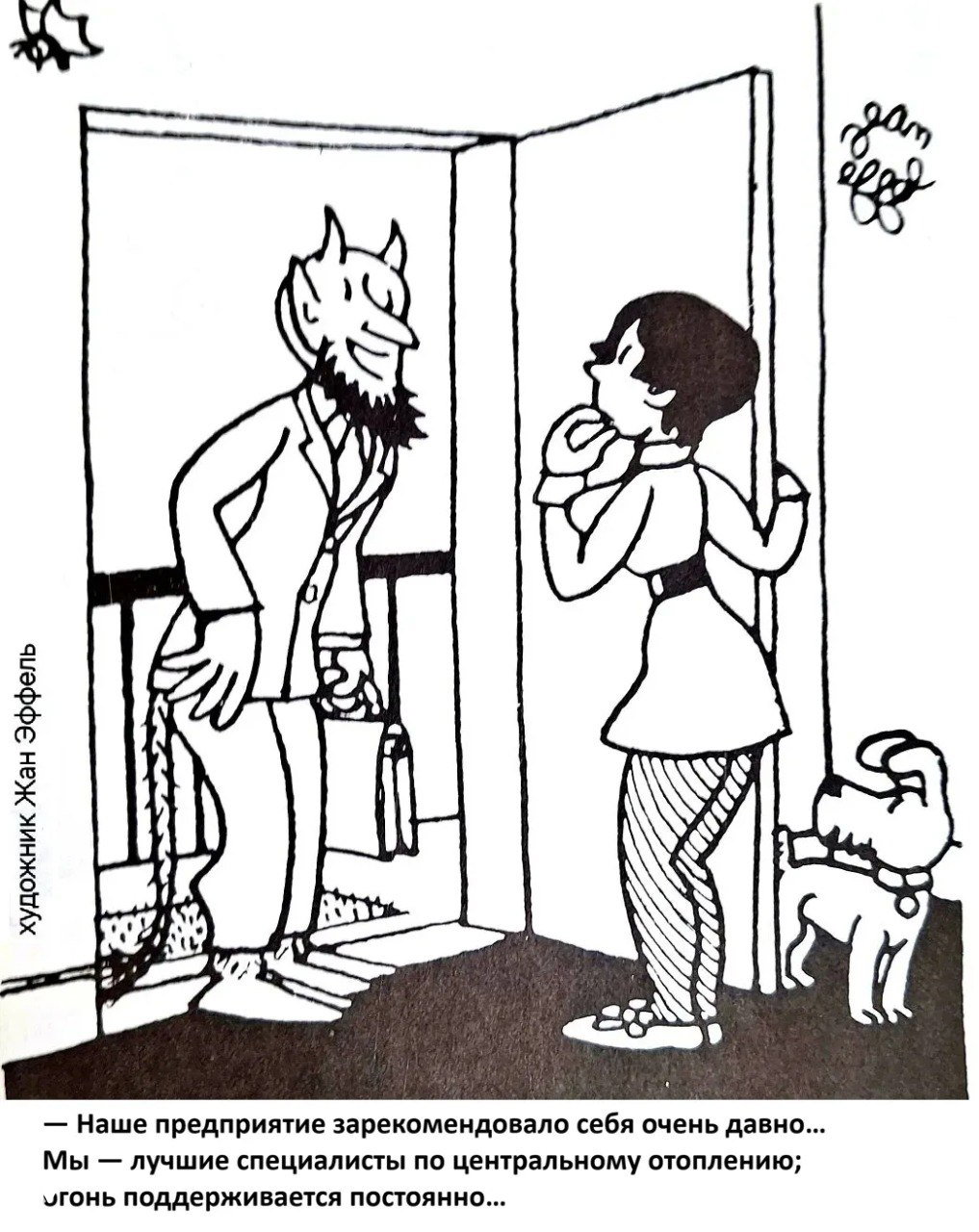 Давайте сегодня не о всеми любимых мемах, а о благородном жанре карикатуры. Один из признанных его мастеров Жан Эффель (1908–1982), французский карикатурист, мастер ироничных зарисовок о жизни и вечных вопросах.