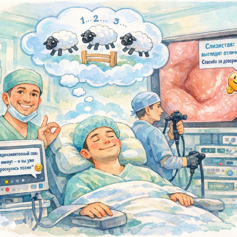 😉 Поэтому, выбирая «сон или не сон», помните: сегодня качественная эндоскопия всё чаще начинается со слова «расслабьтесь» и лёгкой дрёмы под контролем анестезиолога.