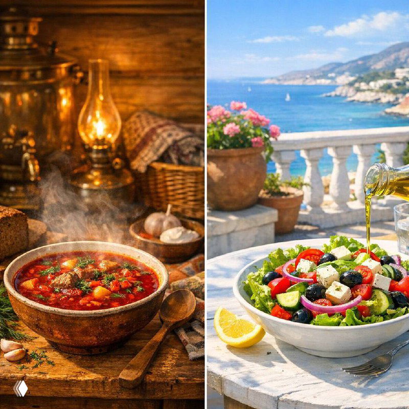 Перед каждой культурой столовых традиций стояло две одинаковые задачи: быстро утолить голод и дать организму как можно больше полезных веществ. В разных климатах и исторических условиях ответы получились диаметрально противоположными. На юге первым на столе появляется холодный салат, а в русской кухне – горячий суп. Почему оба подхода работают, кому они особенно полезны и нужно ли вообще придерживаться какого-то одного сценария – разберёмся с точки зрения современной нутрициологии.