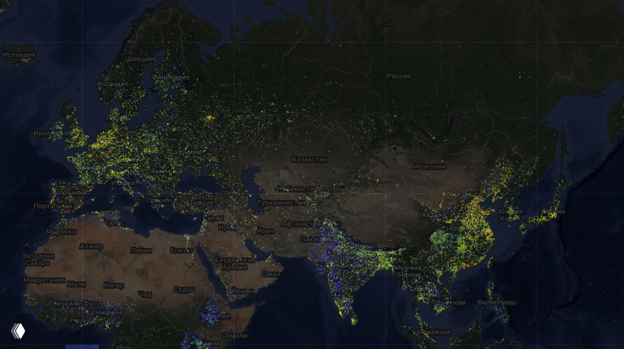 В глобальном масштабе 2,75 миллиарда зданий занимают примерно 506 600 квадратных километров поверхности планеты. Лидирует Азия — на нее приходится почти половина всех нанесенных на карту зданий в мире (приблизительно 1,22 миллиарда). Эта часть света также доминирует по общему объему зданий — 1,27 триллиона квадратных метров. В России самой яркой точкой стала Москва (на втором изображении).