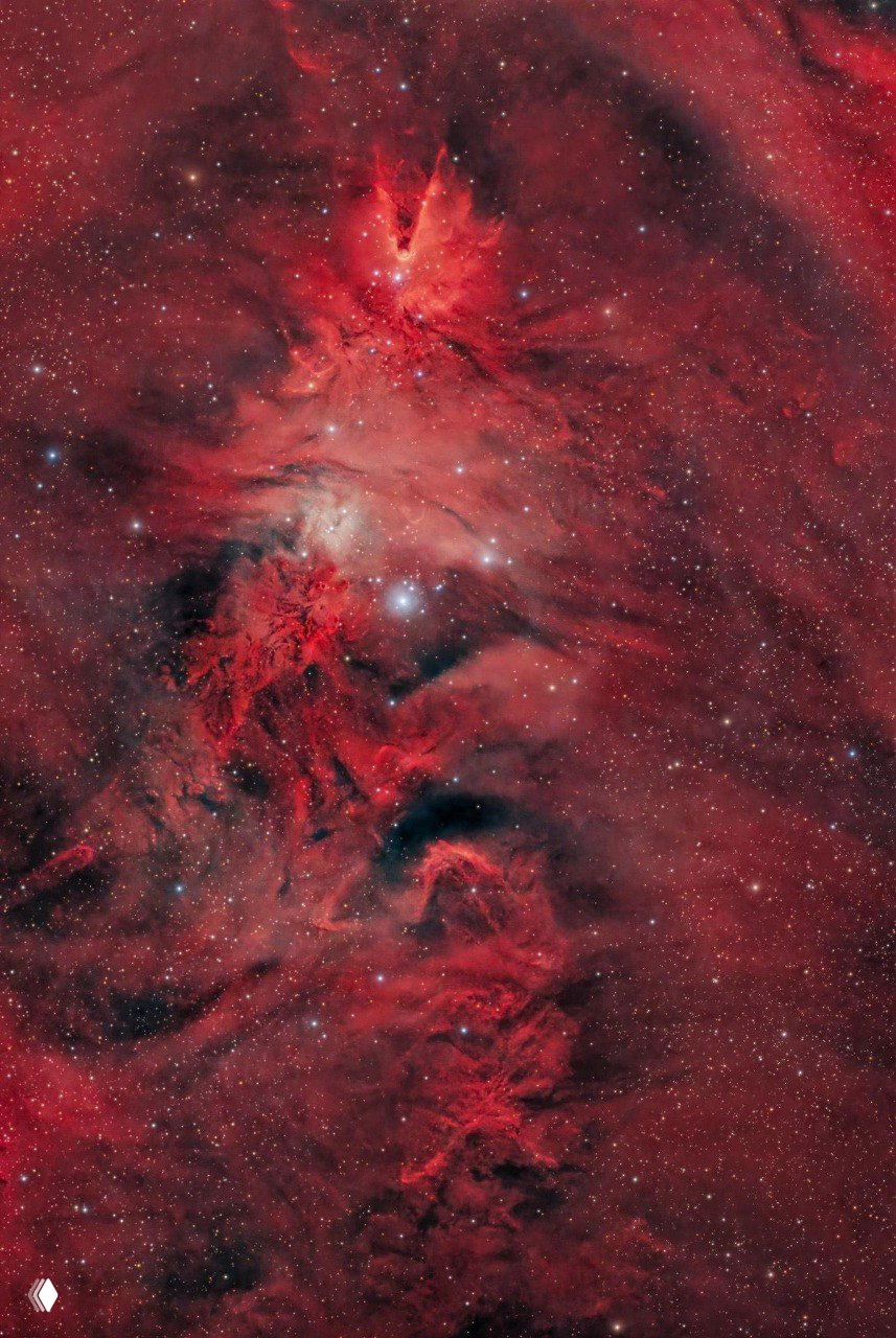 Известная как NGC 2264, эта обширная и активная область космоса, где формируются новые звезды, расположена примерно в 2700 световых годах от Земли, в созвездии Единорога. Эта область находится вблизи небесного экватора и плоского диска Млечного Пути, что позволяет в определенные сезоны увидеть ее из многих точек на Земле.