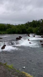 🐻 Всего полтора месяца в году, с августа и до середины сентября, тихие побережья мелководных речушек Аляски становятся крайне оживленными. Неведомая сила заставляет миллионные косяки лосося, преодолевая сильное течение и пороги, устремляться из морской пучины в пресноводные водоемы, чтобы отложить икру. К началу сезона нереста сюда со всех окрестных лесов стекаются и самые большие любители этого деликатеса — аляскинские медведи.