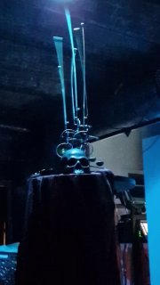 Вокруг него существует особый мир, который создала режиссёр: музыкальный череп, швейная машинка, тележка, на которой лежит молчащая (уже умершая?) жена (Лана Крымова). Её молчание - как противовес бесконечному монологу её мужа... Всё вместе создаёт чувство безысходности, обречённости и нездоровой любви.