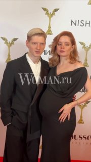 Мила Ершова не смогла пропустить премию «Ника», несмотря на своё положение. Она вышла на красную дорожку вместе с мужем Святославом Рогожаном.