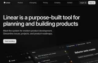 Linear. Обновлённый традиционно стильный сайт приложения для командной работы. Очень тёмная гамма с монохромными иллюстрациями и отличной вёрсткой.