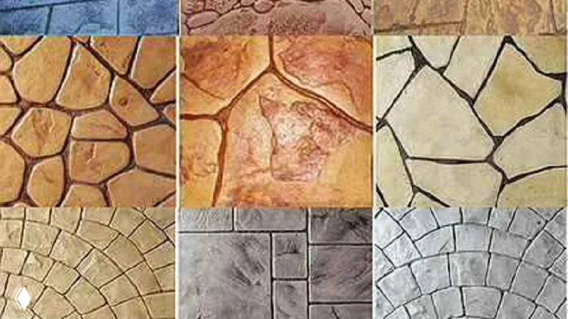 Как это работает: на свежую бетонную стяжку наносят рельефные штампы и пигмент — так обычный бетон приобретает вид брусчатки, клинкера или натурального камня.