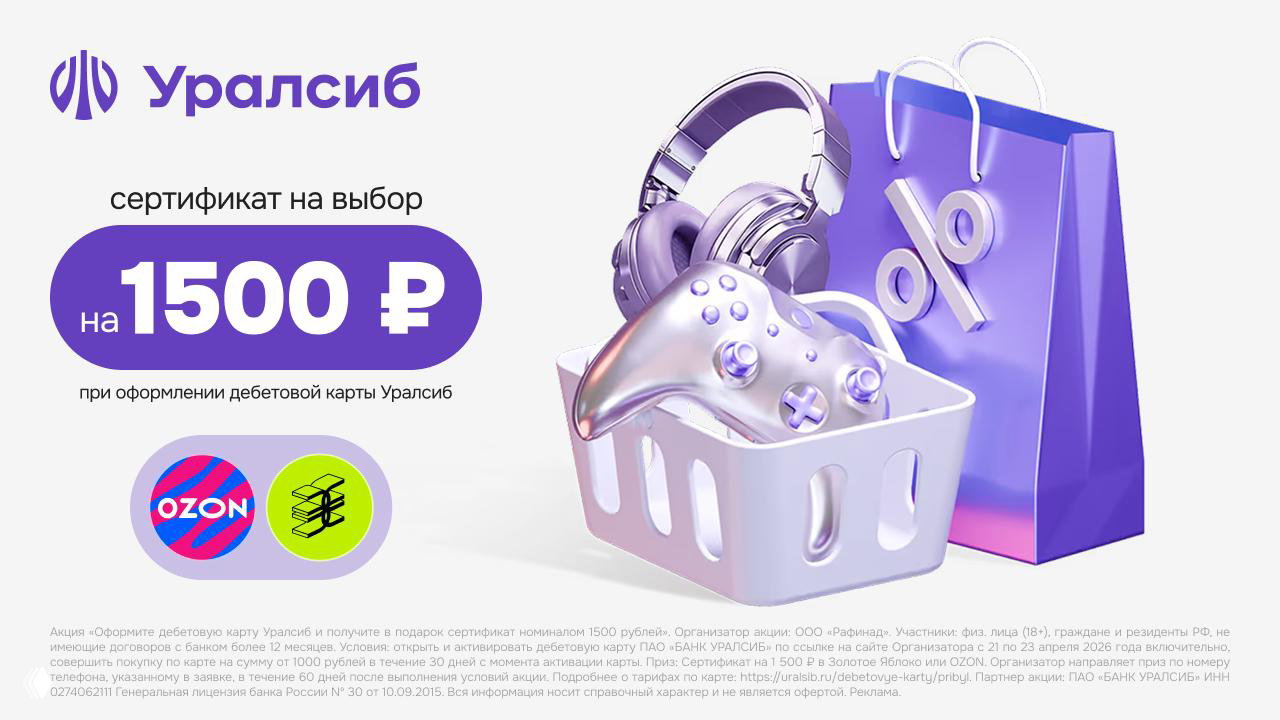 ⚡️ На этот раз другой организатор увеличил до 1500₽ номинал сертификата в 👏Золотое Яблоко или 🛍Ozon за оформление по 23.04.26 заявки на бесплатную дебетовую карту Прибыль по этой ссылке и первую покупку от 1000₽ по 23.05.26 (кроме исключений). Правила.