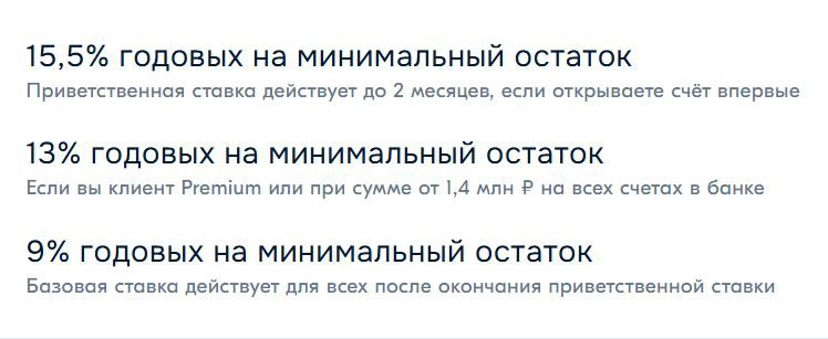 Озон Банк снизил промо-ставку по НС (доступна 1 раз / фиксируется): 16→15,5% на любой минимальный остаток на 2 расчётных периода. Далее - 13% для Premium или с остатками от 1,4млн₽; всем - 9%. Тариф.