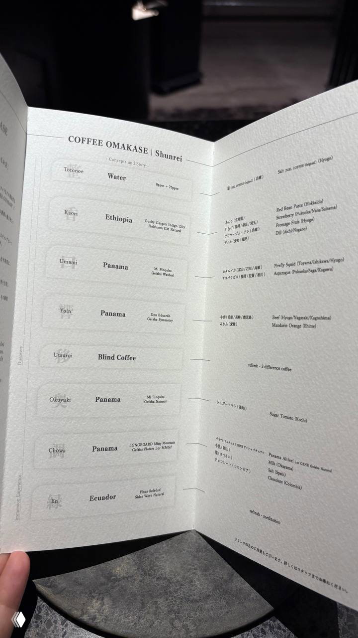Напомню, что омакасе переводится как «доверяю вам». Это формат, когда ты не выбираешь блюда из меню, а полностью полагаешься на то, что тебе предложит шеф. Обычно это про еду, но в Осаке мы попробовали про кофе.