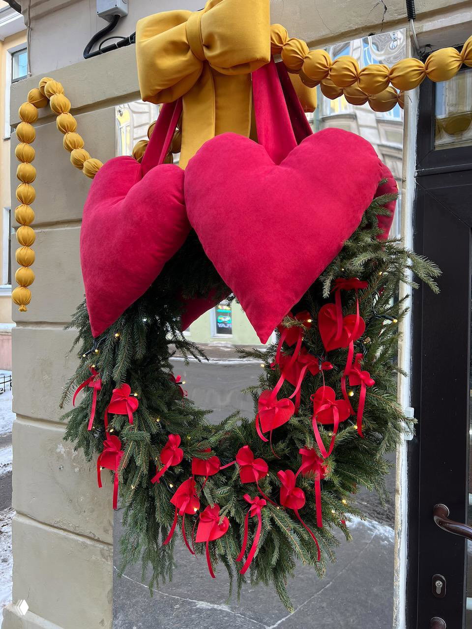 К набору предлагают бокалы игристого по специальной цене. А еще ребята уже приукрасили входную группу под праздник.
