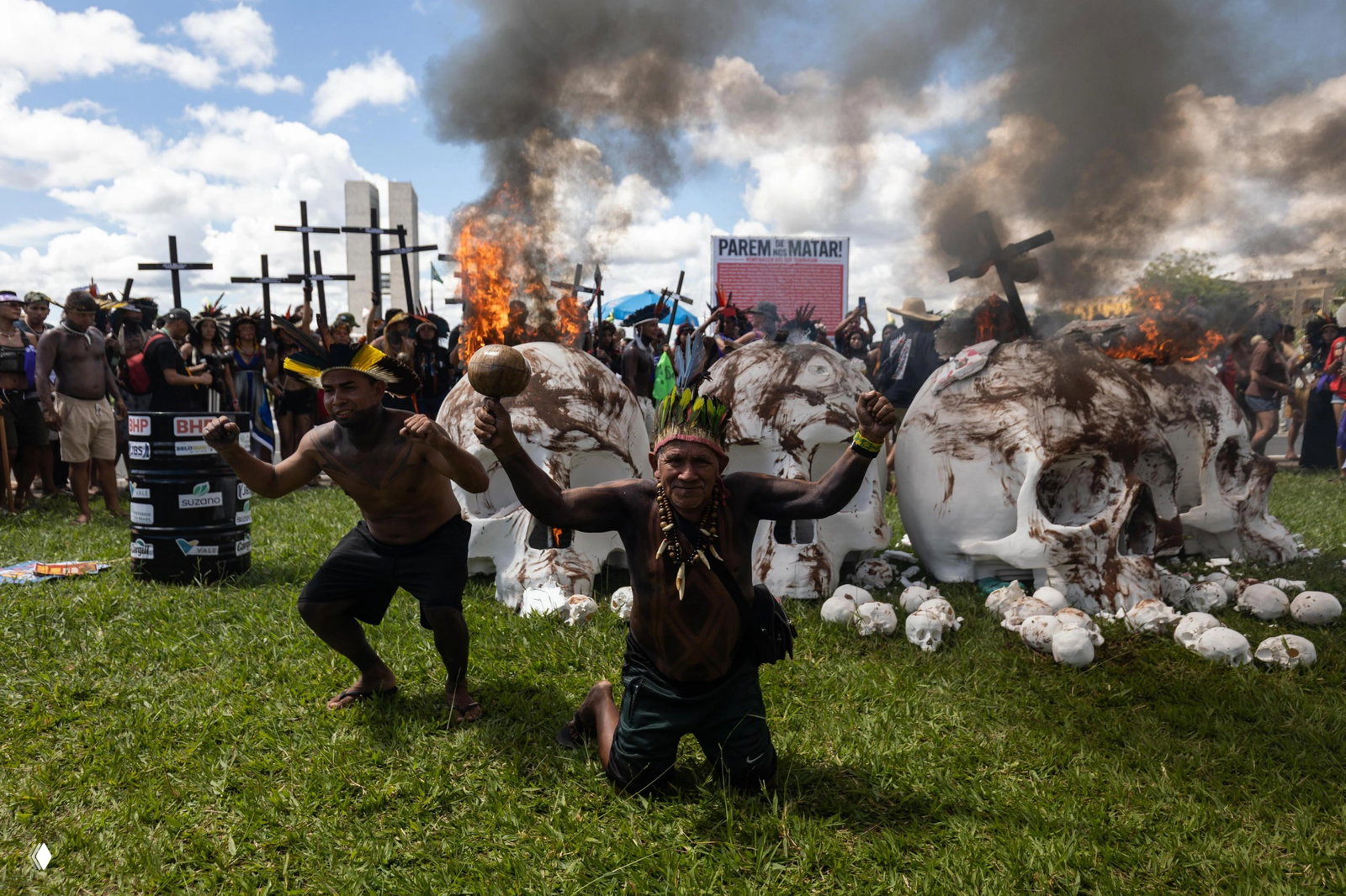 Коренные бразильцы сожгли огромные черепа на акции протеста