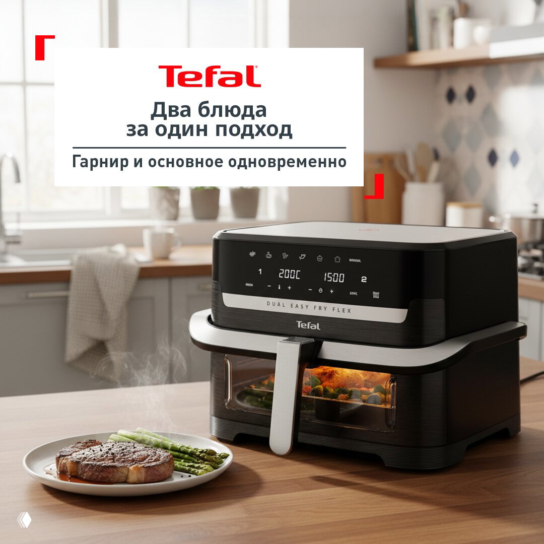 Аэрогриль Tefal Easy Fry помогает с «перекусом на скорую руку»: картофельные дольки, овощи, крылышки — всё получается аппетитно. 😊👍